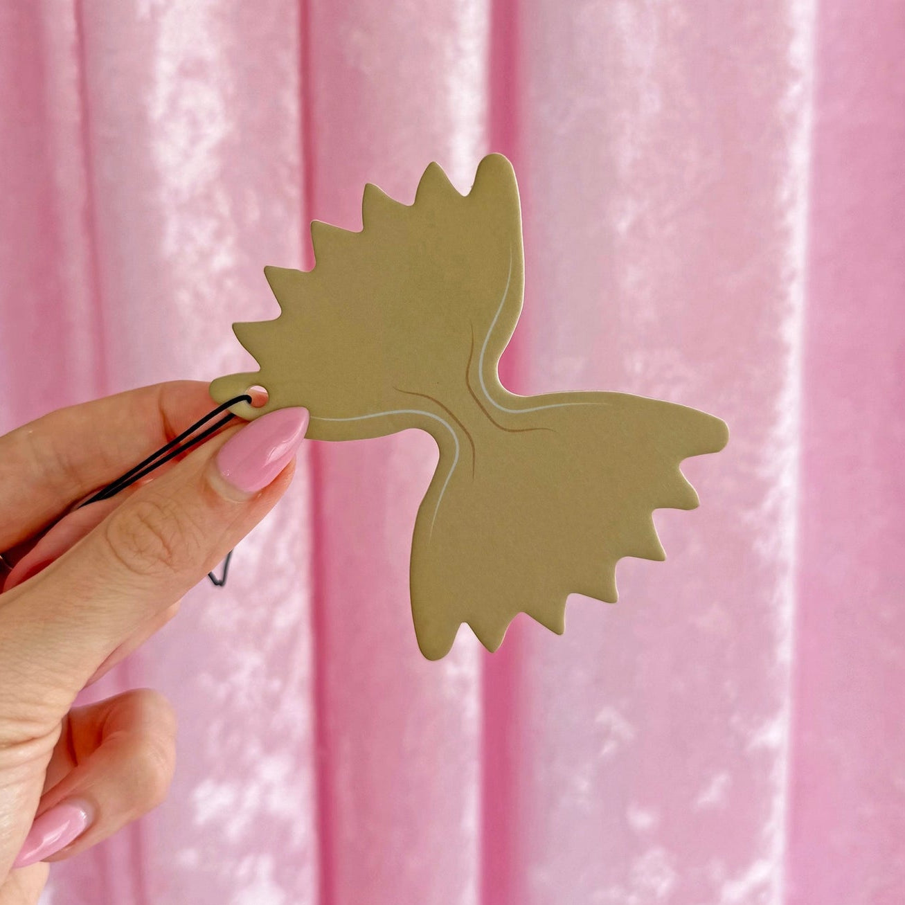 Forever craving a bowl of buttered noodles This air freshener features the classic farfalle noodle - we all know bowtie noodles are the superior pasta! Vanilla scented
