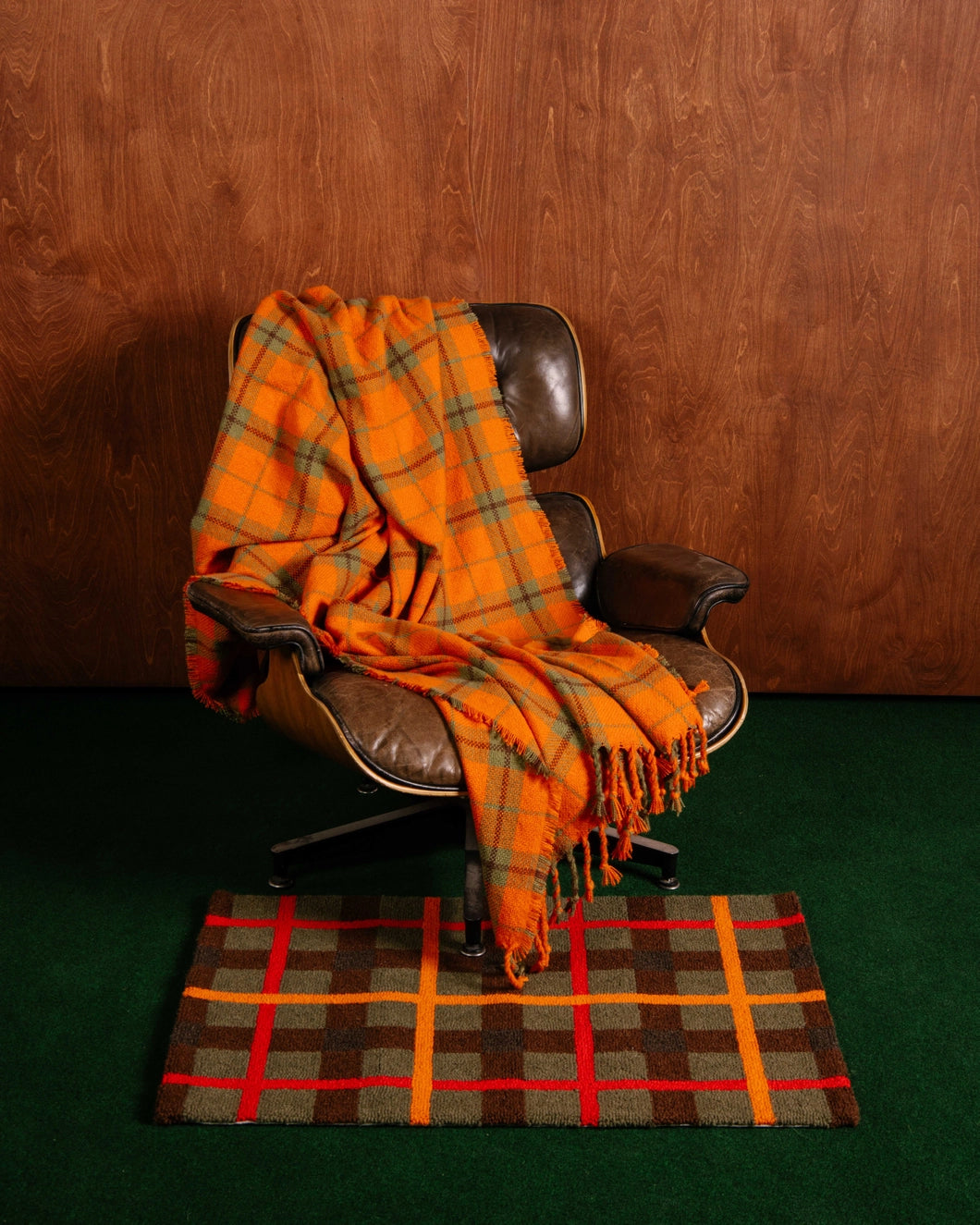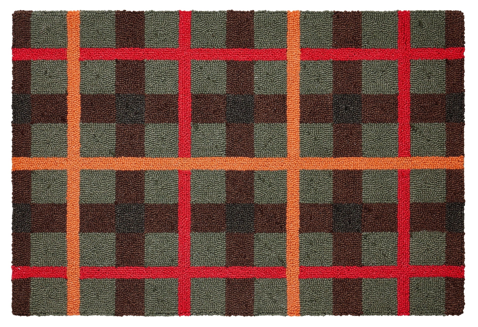 This hook rug features a bold plaid pattern rendered in dense, textured loops. Its graphic pattern and durable construction give it a strong visual presence in a range of interior settings. Functional without feeling strictly utilitarian.