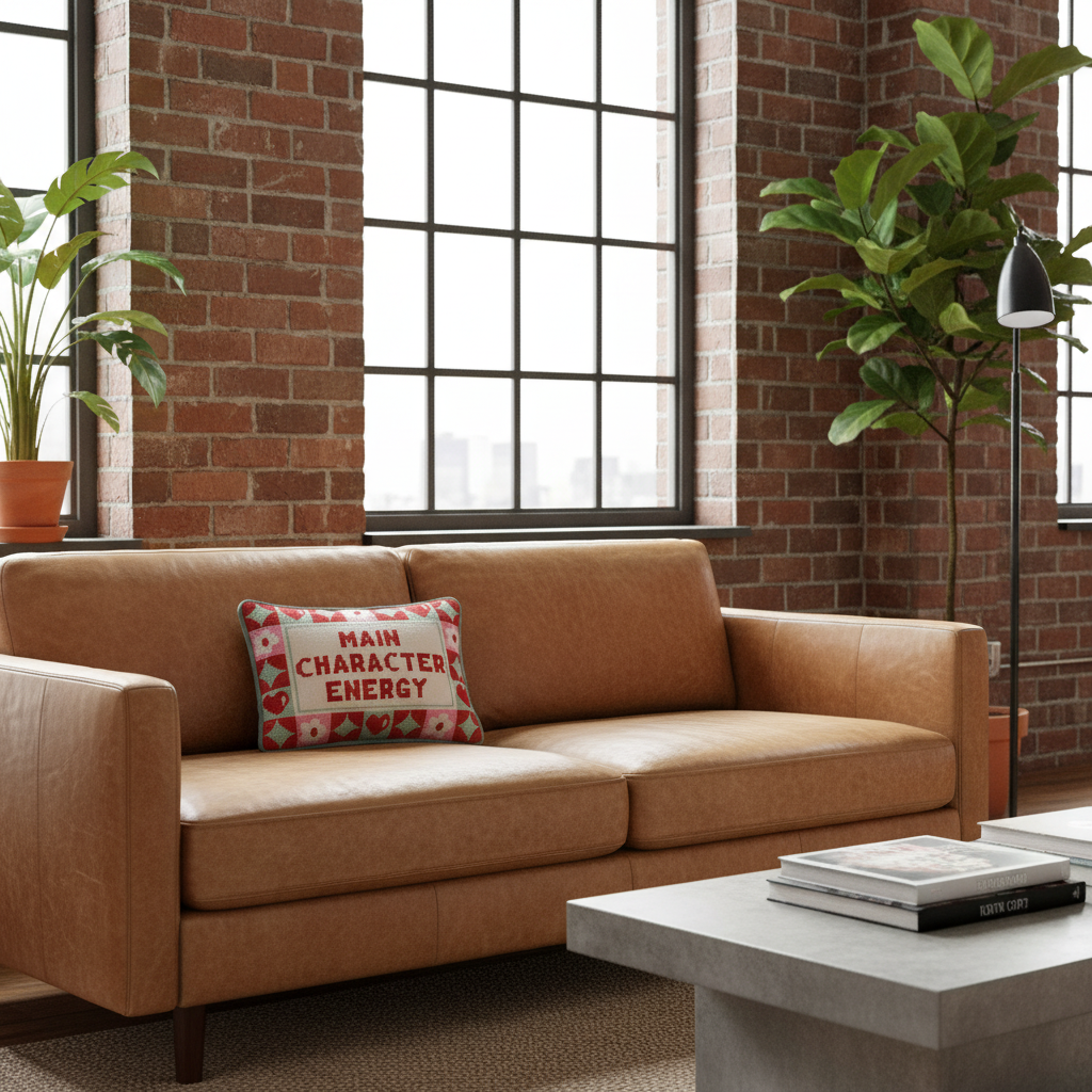 Material: Embroidered needlepoint pillow, poly & cotton velvet. Blown in Filled